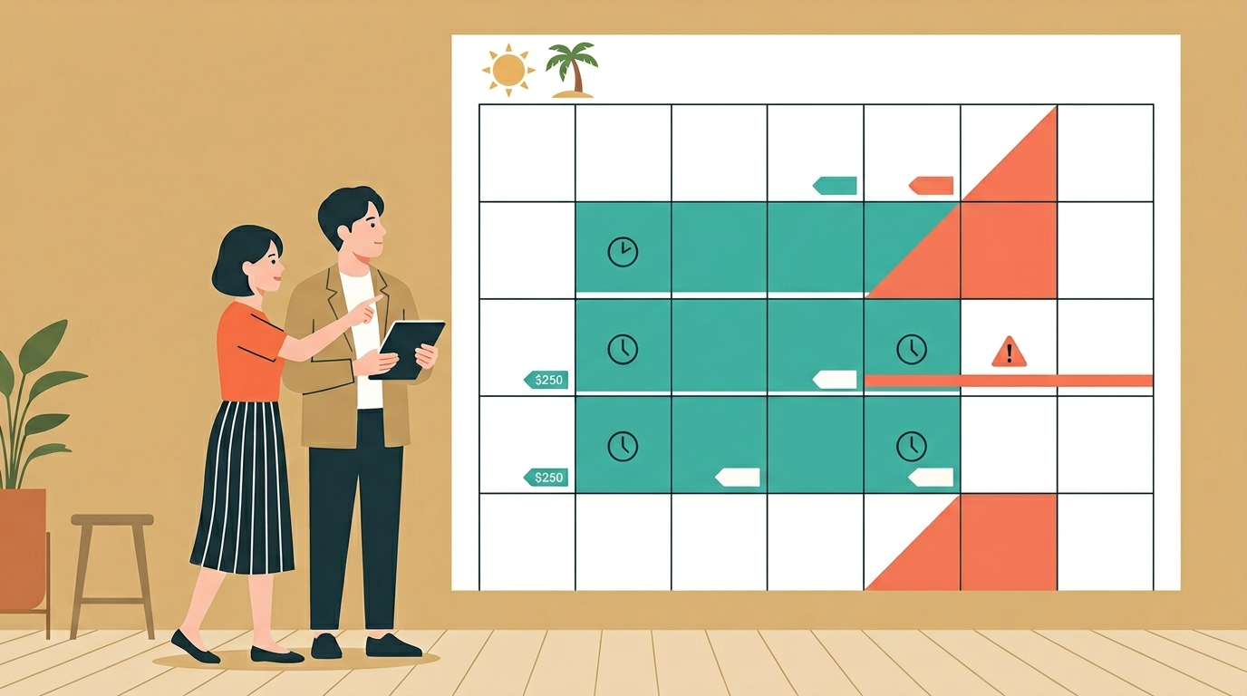 실무적으로는 5월 예약을 세 구간으로 나눠 생각하는 게 좋다. 첫째, 6~10주 전은 인기 지역의 “기본 재고”가 넉넉해 비교가 잘 된다. 둘째, 2~5주 전은 쿠폰/프로모션이 붙으면서 조건 조합이 늘어난다. 셋째, 3~10일 전은 남은 객실로 승부가 갈리는데, 여기서부터는 ‘운’ 요소가 커진다. 즉, 핵심 주말이나 축제 지역은 일찍, 평일/비인기 지역은 유연하게 접근하는 편이 안전하다.